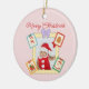 Cute Holiday Keepsake with Festive Pastel Frames Keramik Ornament