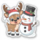 Cute Holiday Reindeer & Snowman Aufkleber