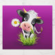 Cute Holstein cow in grass over purple Bierflaschenetikett