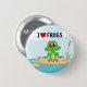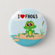 I love (heart) Frogs design with a red heart and the words I love frogs. Cute frog is sitting near blue lake.