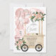 Cute ice cream cart pink balloons bridal shower invitation featuring illustration of clusters of pink balloons, boho ice cream cart with little heart and fall autumn floral bouquet with beige and dusty pink flowers. Perfect bridal brunch!