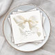 A stylish baby shower napkin with a cute, baby soft neutral bow in ivory beige. The bow adds a playful yet sophisticated flair and is a popular choice for girl, boy, or gender-neutral baby showers. The background is a clean, white canvas, allowing the bow to stand out. Below the bow, the text is arranged in a modern, minimal layout, using an elegant font choice. Napkins are available in 3 sizes: shown here in the smaller cocktail size, they are also available in luncheon and dinner sizes.