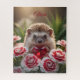 Cute January Hedgehog with Garnet Heart Puzzle