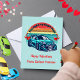 If you modify the size or transfer the design, adjust the image accordingly. This charming illustration features a retro, colorful sun decorated with red hearts and a stylish car, paired with the phrase "You make my heart race." You can customize the "Happy Valentine's" message and include your child's name. The back showcases a playful pattern of tire marks, making this card a fun choice for boys to share with classmates, teachers, friends, and family.