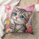 Cute Kitten Floral Cross Stitch Throw Pillow Kissen