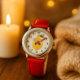 Kinderuhr aus Edelstahl mit rotem Lederarmband