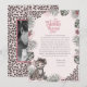 The back includes a custom photo area, framed by a matching pink rectangle over a coordinating hand-drawn leopard print background, creating a stylish and memorable finish. Perfect for baby girl thank you notes, safari-themed showers, and jungle celebrations, and a beautiful keepsake for your guests.