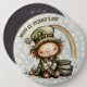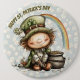 Cute Leprechaun With Pot of Gold and Rainbow Button