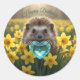 Cute March Hedgehog with Aquamarine Heart Runder Aufkleber