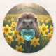 Cute March Hedgehog with Aquamarine Heart Runder Pappuntersetzer