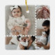 Celebrate your little one with our Cute Minimal Heart Baby Photo Collage Script Name Ceramic Ornament. This modern and elegant keepsake features a clean four-photo collage layout on both the front and back for a total of 8 photos. Perfect for displaying your favorite baby moments. Each photo is accented with a simple, minimal heart frame detail, adding a touch of sweetness and love. Personalize with your baby’s name in a graceful script font for a timeless and heartfelt touch. This ornament makes a beautiful keepsake for baby’s first Christmas, a thoughtful gift for new parents or grandparents, or a charming addition to your holiday tree that captures your most precious memories. Design and layout by © Moodthology Papery.