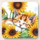 Cute Napping Kitten and Sunflowers Getränkeuntersetzer