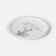 These cute baby shower paper plates feature a watercolor teddy bear holding onto a dusty blue anchor below the words "baby shower" in dusty blue decorative font. Personalize the text with the name of the mom-to-be and date in charcoal gray sans serif font. Ideal for a boy's nautical themed baby shower!
