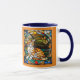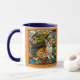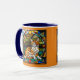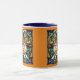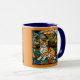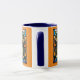 A cute funny cat coffee mug featuring an orange tabby portrayed in stained glass.