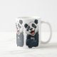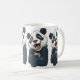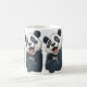 An expressive panda is shown with a massive, delighted grin, its mouth wide open to reveal a pink tongue and small teeth. Its large, bright brown eyes are wide with excitement, giving it a playful and friendly personality.