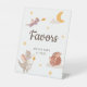 Cute pastel birthday party favor table sign featuring playful dragon, star and cloud illustrations paired with fun, stylish typography on different color backgrounds. You can find more matching items from this collection in my store.