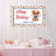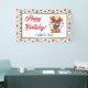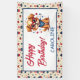 The cheerful "Happy Birthday" script and personalized name in the center make it a standout decoration for any 4th of July birthday celebration. The charming border pattern of top hats, cupcakes, and rockets ties the whole party theme together beautifully.