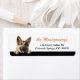 The left side of these return address labels features an adorable German Shepherd Dog peeking over a ledge. Your custom text is in gold and black at the right. Everything is placed on a white background.