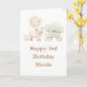 Rustic birthday card with a pig, wheelbarrow, flowers and sun. Perfect for a spring or summer birthday party. The words can be changed to suit your own details or requirements