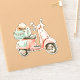 This adorable vinyl sticker features a watercolor scooter in soft shades of pink and aqua green.