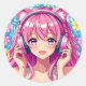 Cute Pink Anime Girl with Headphones Runder Aufkleber