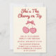 Cute Pink Bow Cherry on Top First Birthday Einladung