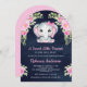 Cute Pink Bow Floral Elephant Navy Baby Shower Einladung