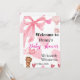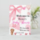 Cute Pink Bow Teddy Bear Shower Welcome Einladung