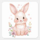 Cute Pink Bunny Party Theme Pastel Floral Quadratischer Aufkleber