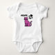 This adorable baby bodysuit features a cute pink cat illustration with the playful word “MIAOU.”