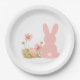 Cute Pink Easter Bunny with Spring Flowers Pappteller