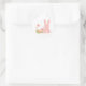 Cute Pink Easter Bunny with Spring Flowers Runder Aufkleber