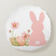 Cute Pink Easter Bunny with Spring Flowers Rundes Kissen