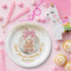 Add the perfect finishing touch to your winter baby shower favors with these adorable party paper plat . The design features a cute watercolor gingerbread girl nestled inside a glass Christmas bauble, topped with a pink bow and festive faux gold glitter dust.