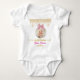 Celebrate a special milestone with this adorable baby bodysuit. The design features a cute watercolor gingerbread girl nestled inside a glass Christmas bauble, topped with a pink bow and festive faux gold glitter confetti.