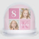 Beautiful pink 2 photo snow globe gift for a little girl. Celebrate your child with cute photographs of them on this add your own picture Christmas present with adorable pretty pink squares. Add their name and age and a 3rd pic on the back