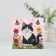 Cute Pink Kitty Cat in Flowers Einladung