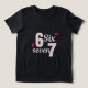 Make your little one's day extra special with this adorable "6 Six 7 Seven" number-themed t-shirt. This creative design features the numbers six and seven filled with a trendy pink and white plaid (checkered) pattern, perfectly accented by charming pink hearts floating around the text. The playful combination of bold typography and soft, aesthetic patterns makes this tee a fantastic choice for kids' birthday celebrations, school events, or casual everyday wear. Designed specifically for children's fashion, the vibrant pink elements pop brilliantly against the classic black fabric, offering a stylish and cheerful look that any child will love. It makes a wonderful and unique gift for young fans of pastel colors and cute graphic art.