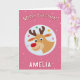 Cute Pink Reindeer Kid`s Name Merry Christmas Karte