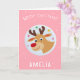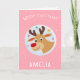 Cute Pink Reindeer Kid`s Name Merry Christmas Karte