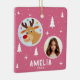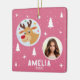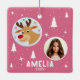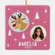 Cute Pink Reindeer Kid`s Name Photo Christmas Keramikornament