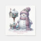 Cute Pink Snowman Winter Birthday Serviette