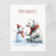 A playful polar bear sits on the snowy ground, wearing a bright red scarf. It gently touches the hand of a snowman adorned with a matching red hat and a carrot nose. Surrounding them is a serene, white landscape, evoking a sense of winter wonder. The scene captures a delightful moment of friendship between the bear and the snowman, perfect for sparking joy and imagination during the cold season.