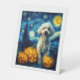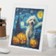 Cute Poodle Dog Halloween Jack O Lantern Pumpkin Face Starry Night Van Gogh Style