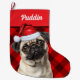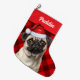 Cute Pug Dog Red Buffalo Plaid Custom Großer Weihnachtsstrumpf