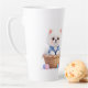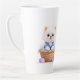 An adorable fluffy puppy sitting in a basket wearing a cute blue outfit. A soft and charming design perfect for dog lovers and kawaii fans.