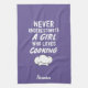 Celebrate her culinary power and passion with this cute custom kitchen towel! This unique, empowering towel features the bold and inspiring quote, "Never Underestimate A Girl Who Loves Cooking," and can be personalized with a Name, creating the perfect accessory for the cook who commands the kitchen with skill and heart. It's a wonderful novelty item that combines practical functionality with a strong message of feminine strength and creativity, perfect for gifting to an aspiring chef or a home cook who deserves recognition.