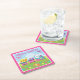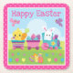 Add festive charm to your spring table with this playful Easter coaster featuring a cartoon-style train rolling through a grassy field filled with tulips and decorated eggs. A white bunny drives the engine, followed by a chick holding a flower and a smiling carrot, with pastel eggs in tow. Birds soar above the scene, framed by a pink polka dot border and cheerful “Happy Easter” text. Perfect for seasonal entertaining, party favors, or Easter décor.