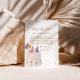 Celebrate a sweet milestone with this adorable illustrated invitation featuring two pastel bunnies perched on a birthday cake beside a golden number one, balloons, flowers, and colorful confetti. The soft, whimsical artwork makes it perfect for a cheerful first birthday celebration.
