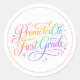 Cute Rainbow “Promoted to First Grade” Design Runder Aufkleber